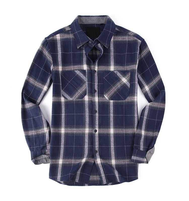 Warhorse Clothing Men's Flannel Casual Shirt Classic Black and White Large Plaid Pattern European and American Men's Clothing Wholesale Customization