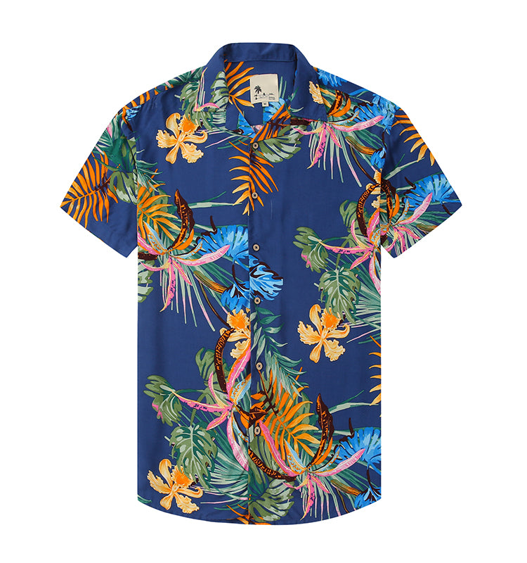 Warhorse Clothing Men's Hawaiian Shirt Black European and American Men's Clothing Wholesale Customization