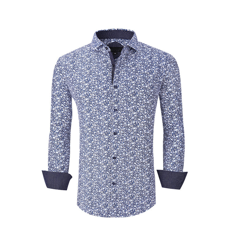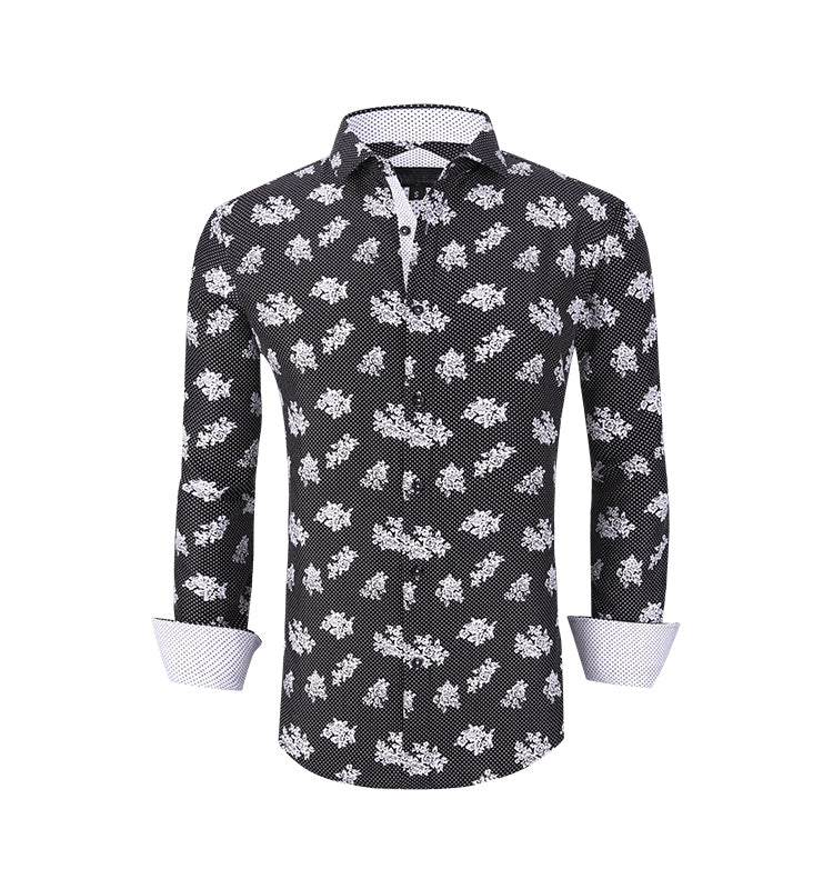 Warhorse clothing men's peach skin print long sleeve shirt white leaves European and American men's clothing wholesale customization