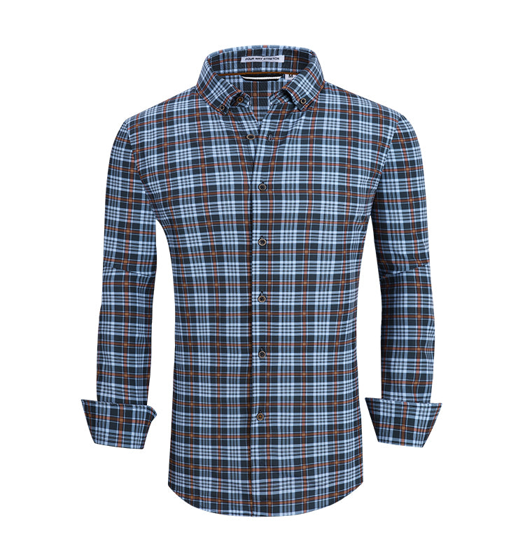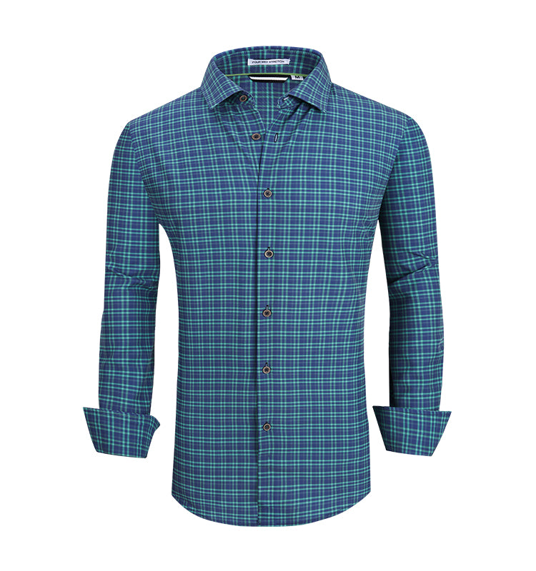 Warhorse clothing men's plaid print casual long-sleeved shirt light green European and American men's clothing wholesale customization